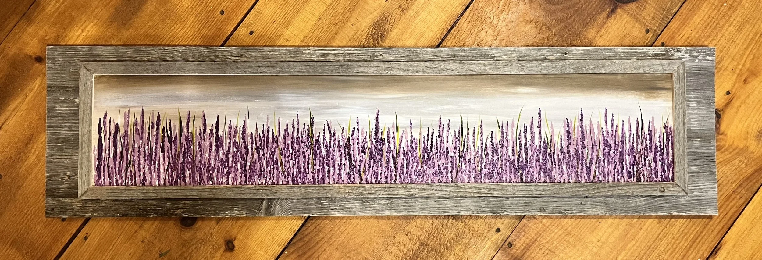 Lavender Field - Acrylic on wood and framed on Reclaimed Barn Wood - SOLD